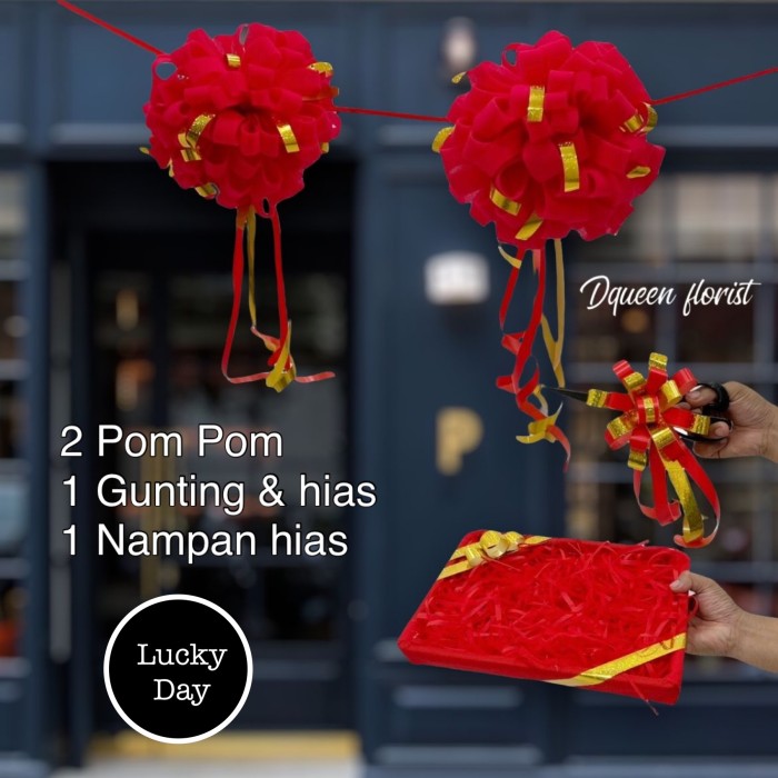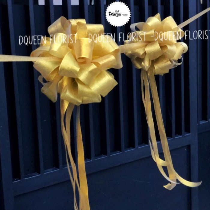 Dqueen Florist – Pita Peresmian mengkilat Pompom Premium Gold Silver