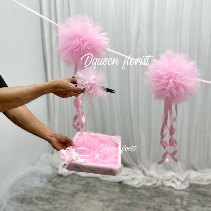 Dqueen Florist – Pita Peresmian Pom Pom bahan tulle PREMIUM