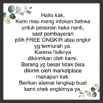 Sangat di harapkan alamat yang lengkap dan jelas ( bila perlu ada patokan lokasinya untuk memudahkan pengiriman ) dan sertakan juga nomor HP aktif penerima supaya pemesan tidak terganggu oleh kurir yg menelpon untuk menanyakan alamat.