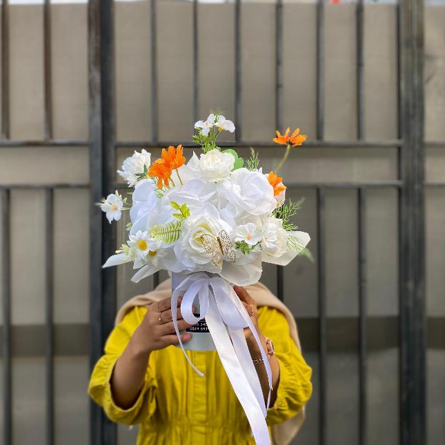 Deskripsi ini meliputi : – Bunga box artificial. – Tinggi kurleb 40-50 cm. – Dapat custom warna. – Free kartu ucapan ( ucapan tidak dapat direvisi )