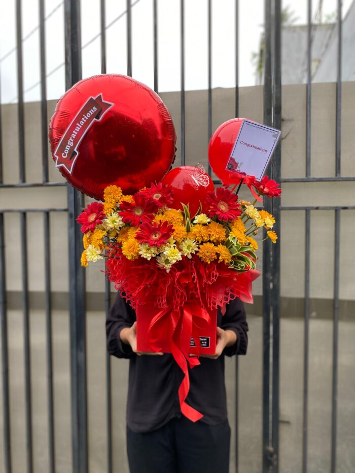 BUNGA BOX FRESH FLOWER ULANG TAHUN BIRTHDAY BALON BUKET