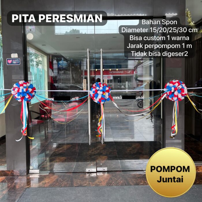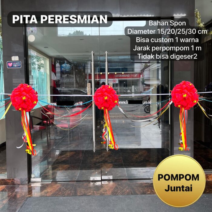 Dqueen Florist – Pita Peresmian Pompom Juntaian Satin Jepang – Grand Opening Elegan – Bisa Custom Warna – Jakarta