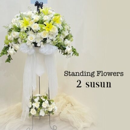Standing flowers 2 susun dukacita /custom/happy wedding/pembukaan toko/ulang tahu
